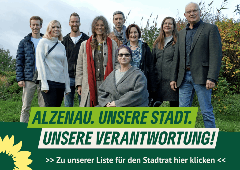- Bündnis 90/Die GRÜNEN Alzenau nominieren Kandidatinnen und Kandidatenfür die Kommunalwahl 2026Am Samstag, den 20. September 2025, fand im Café Arbeit in Alzenau die Aufstellungsversammlung von Bündnis 90/Die GRÜNEN zur Kommunalwahl 2026 statt. Von den 60 geladenen Wahlberechtigten nahmen 23 Mitglieder… Bündnis 90/Die GRÜNEN Alzenau nominieren Kandidatinnen und Kandidatenfür die Kommunalwahl 2026 weiterlesen